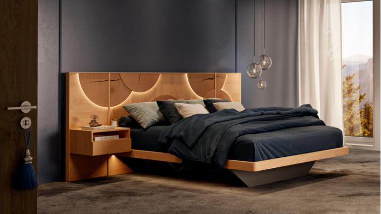 - Motion-sensor LED backlighting in bed frame