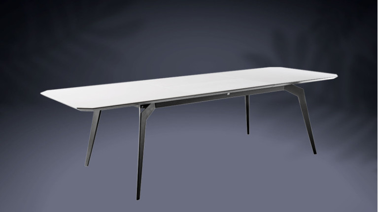 Choice of integrated or synchronized central extension . Allows effortless, simultaneous opening of the tray's 2 extension leaves. Extensions of 40, 50, 65 or 90 cm depending on tabletop length. Available finishes: oak veneer, walnut veneer, ceramic or glass.
