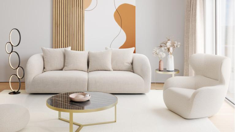 Armrests and backs filled with 30 kg/m3 polyurethane foam, 100% polyester fiber padding