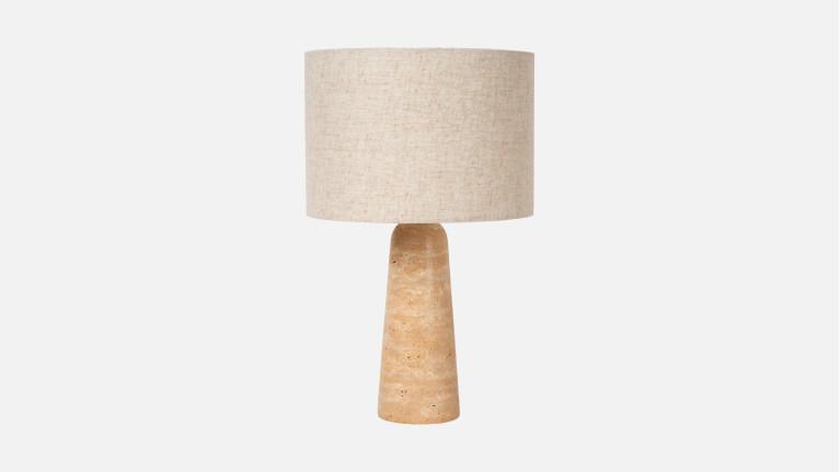 Elegant and timeless, the NIMUE table lamp seduces with its travertine base and classic linen shade. Perfect as a duo on bedside tables or next to your sofa, it blends harmoniously into any interior. Its discreet switch and energy-saving LED lighting bring simplicity and refinement to your spaces.