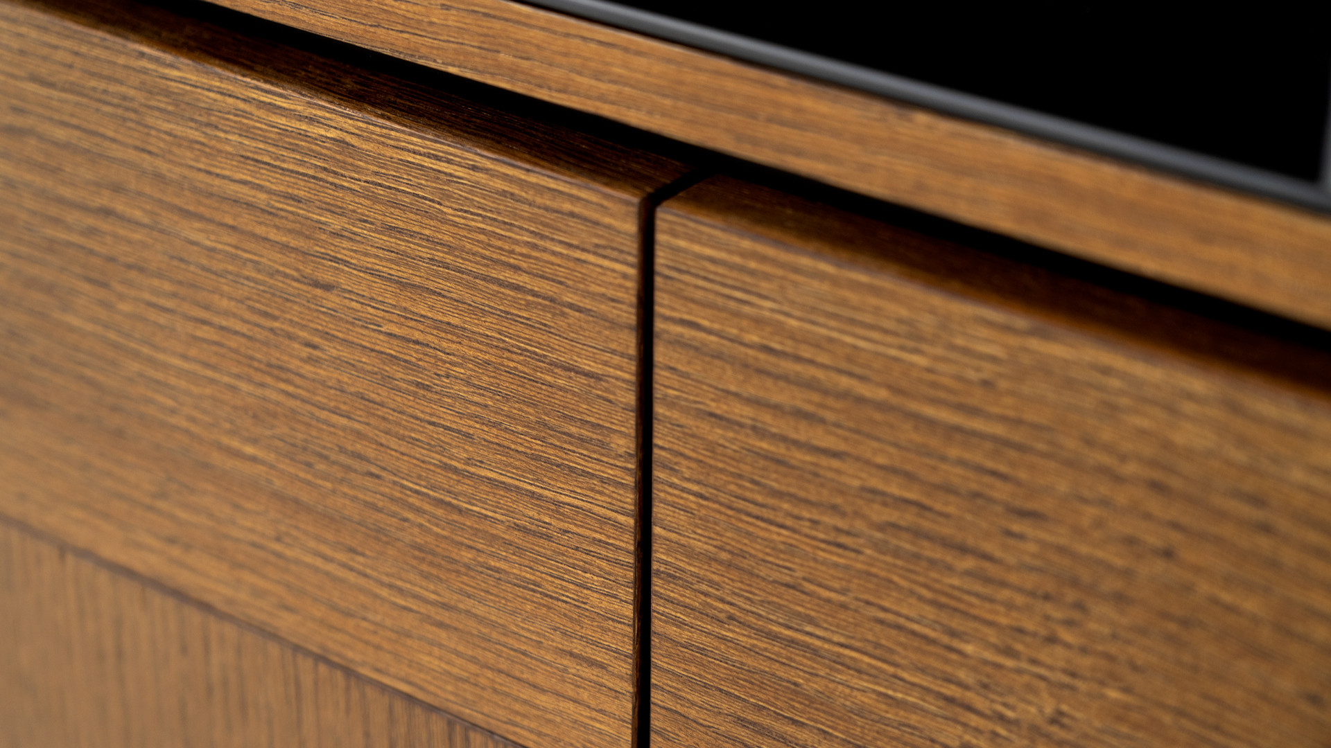 Portes courbées en panneau de fibres de moyenne densité ép. 2 x 2 mm + Peuplier ép. 16 mm, ouverture système Push-pull